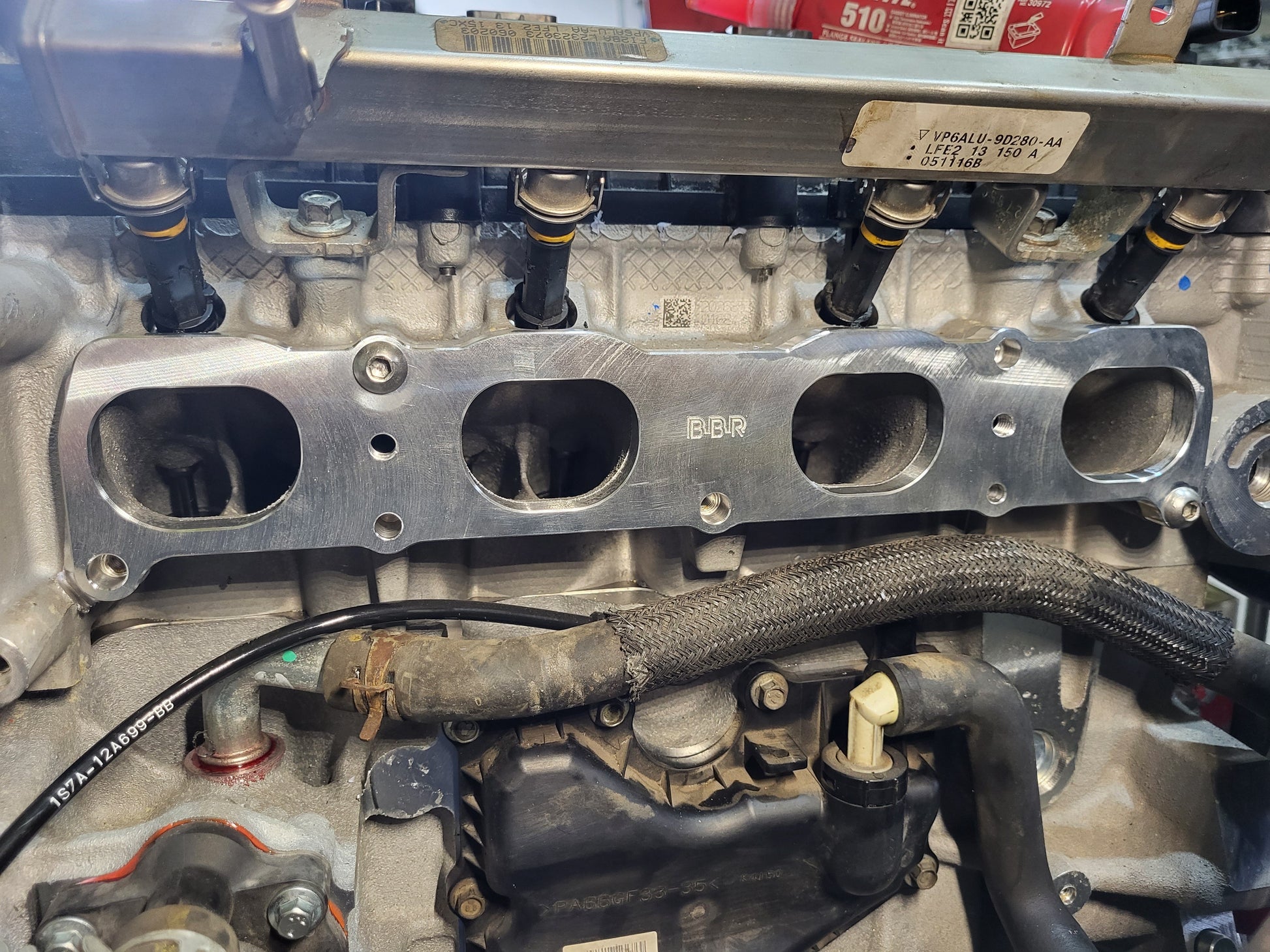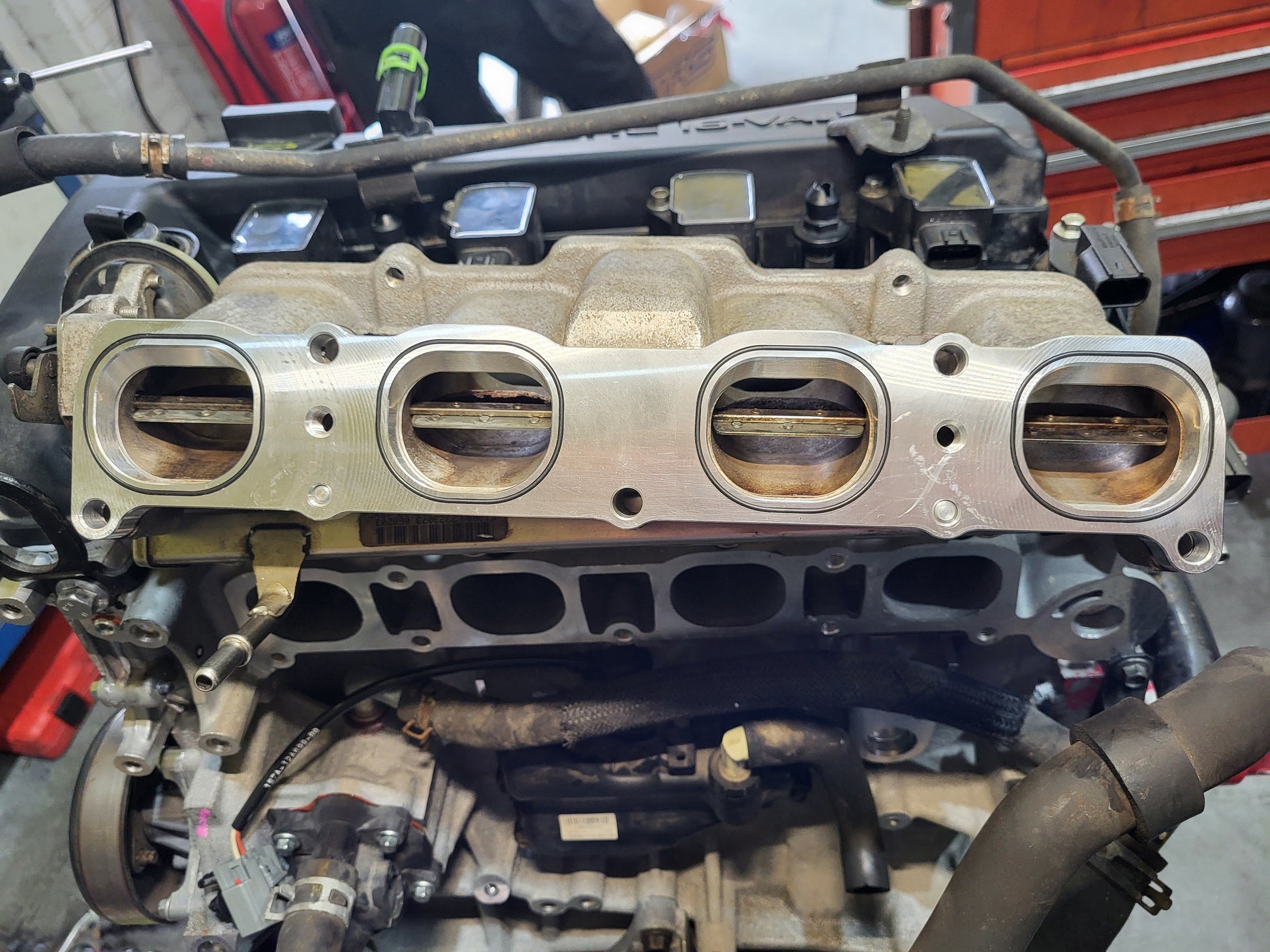 No welding of the standard manifold, or sealing issues to the 2.5 cylinder head. A neat plug and play solution with 2.0 ports intake side and 2.5 ports cylinder head side making (any) 2.0 Duratec intake manifold a direct fit to the 2.5 head.