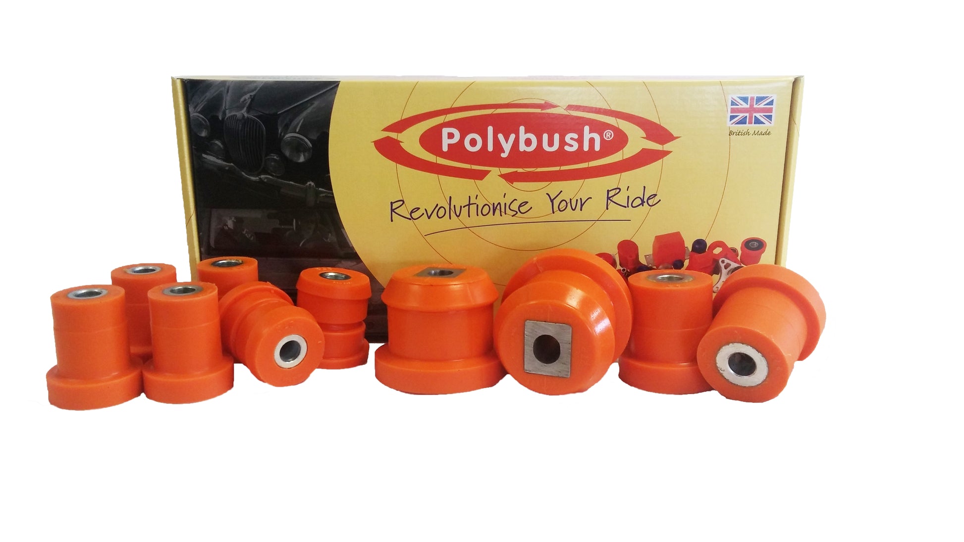 Spring bushes are subject to the same forces as a control arm bush, as well as supporting the weight of the vehicle. Polybushes, with their combination of strength and elasticity, improve bush life and ride quality in on.