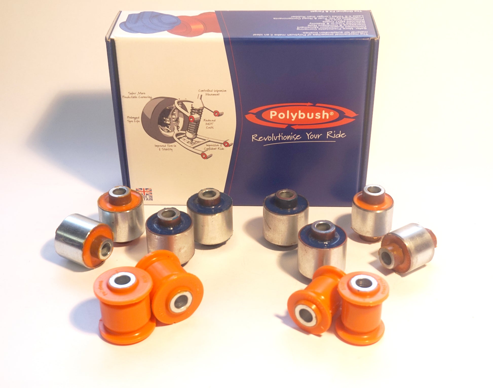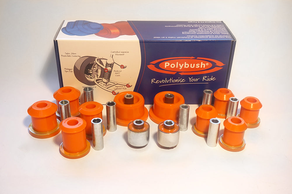 Spring bushes are subject to the same forces as a control arm bush, as well as supporting the weight of the vehicle. Polybushes, with their combination of strength and elasticity, improve bush life and ride quality in on.